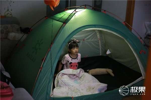除了室外,偶爾室內(nèi)搭個(gè)帳篷,也是一種不錯(cuò)的感受。女兒正帳篷內(nèi)看電視呢,很興奮。也很開(kāi)心。
