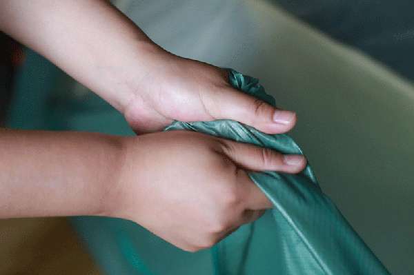 用鑰匙反復(fù)劃帳棚的面料,面料上沒(méi)有劃的痕跡。說(shuō)明此款帳篷面料很結(jié)實(shí)耐磨。