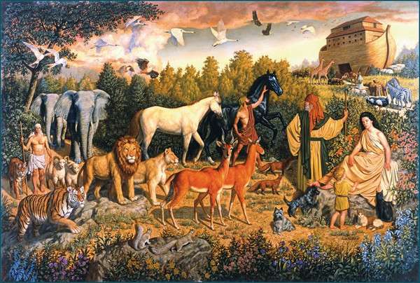 出自《圣經(jīng)》。上帝對人類所犯下的罪孽非常憂傷,決定用洪水消滅人類。諾亞是個(gè)正直的人,上帝吩咐他造船避災(zāi)。經(jīng)過40個(gè)晝夜的洪水,除諾亞一家和部分動(dòng)物外,其他生物都被洪水吞沒。后被用來比喻災(zāi)難中的避難所或救星。