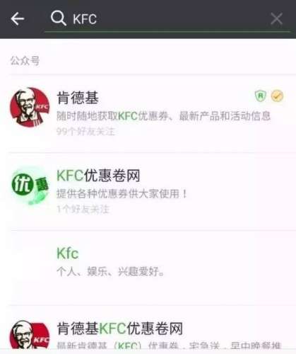 你會發現肯德基的認證微信號其實并不是“KFC”