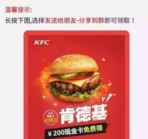 “掃碼領取肯德基200元現金卡”