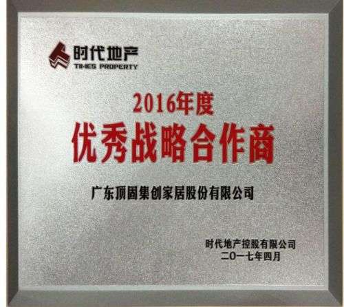 時(shí)代地產(chǎn)授予頂固五金的“2016年度優(yōu)秀戰(zhàn)略合作商”獎(jiǎng)牌