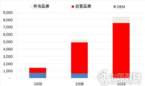 下圖中可以看到,2003時(shí)OEM業(yè)務(wù)占了半壁江山,2008年OEM業(yè)務(wù)占比下降到12%,2015年僅占2%。
