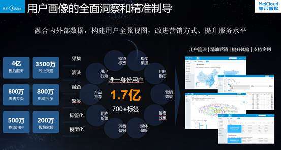 其中,在大數據方面,美的構建了包含市場、渠道、生產、研發、售后、消費者等環節在內的研產銷一體化閉環驅動,從而實現市場研判、競爭剖析,打造精品、按需生產,品質監控、產品改善,聆聽客戶、改善服務,用戶洞察、提升體驗,電商運營、營銷策略等等。