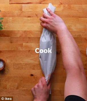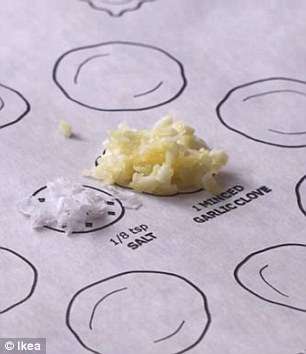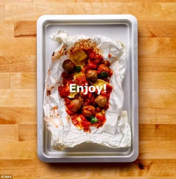 越來越重視餐飲業務的宜家最近做了在加拿大市場推出了一個特別的食譜。每道菜的材料、佐料都用安全食用油墨畫在一張羊皮紙上,紙張頂部有步驟過程和使用說明。消費者將對應的食材放到紙張上的固定位置后,把羊皮紙卷起來,放入微波爐加熱即可。