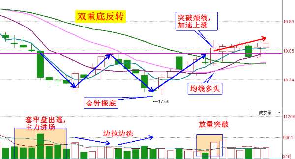 該股從分時(shí)盤口上看,有主力大單尖角波拉升,形成脈沖波上漲。成交明細(xì)看到大單買入小單賣出,說(shuō)明主力拉升意愿強(qiáng)烈,實(shí)力雄厚。從日線看,股價(jià)高位超跌20%,在部形成“雙重底”反轉(zhuǎn),其中左肩放量下跌,有套牢盤出局,主力在打壓吸籌。而上漲縮量,下跌放量,明顯是大資金在邊建倉(cāng)邊洗盤,主力高度控盤。在最低價(jià)17.66元形成“金針探底”,是主力盤中打壓股價(jià)有快速拉回形成的“向下試盤”,測(cè)試底部支撐強(qiáng)度。預(yù)計(jì)后市還有40%-50%的盈利空間!