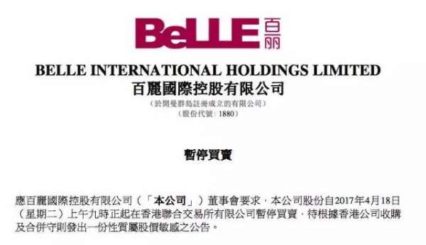 4月18日,百麗國際發(fā)布停牌公告,停盤原因是鼎暉投資正與百麗高層研究潛在收購交易,據(jù)知情人士透露,鼎輝投資正牽頭57億美元(約合442億港幣)商討收購百麗國際,而在停牌之前的市值為444.48億港幣。