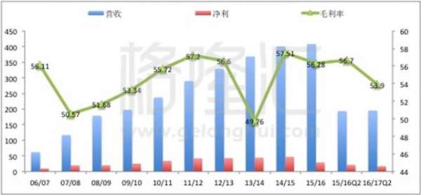 凈利潤增長速度也再沒上過兩位數(shù),到2015/2016年財年,百麗的凈利潤大跌近38%。2016/2017財年中期報告,百麗的凈利潤又再度下滑了近20%。