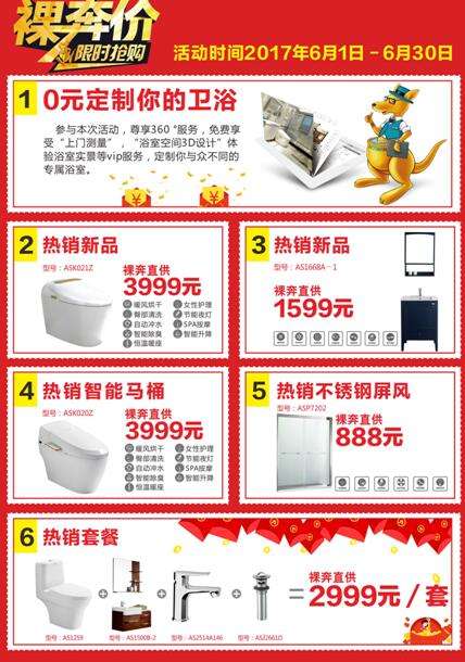 \u00A0\u00A0\u00A0\u00A0本次澳斯曼“裸奔價”限時搶購活動匯聚了澳斯曼2017王牌熱銷產(chǎn)品,心動裸奔價即將開啟“限時搶購”模式,各個系列搶手產(chǎn)品,先到先得!凡參與此次活動的顧客均可獲得360°全方位貼心服務(wù),“0元”免費(fèi)享受上門測量、浴室空間3D設(shè)計、體驗(yàn)浴室實(shí)景VIP服務(wù)等。