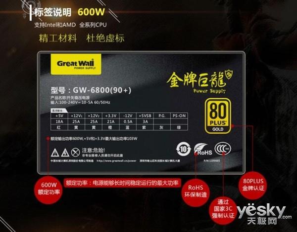 (原標(biāo)題:年中購(gòu)物超值選 長(zhǎng)城金牌巨龍GW-6800電源)