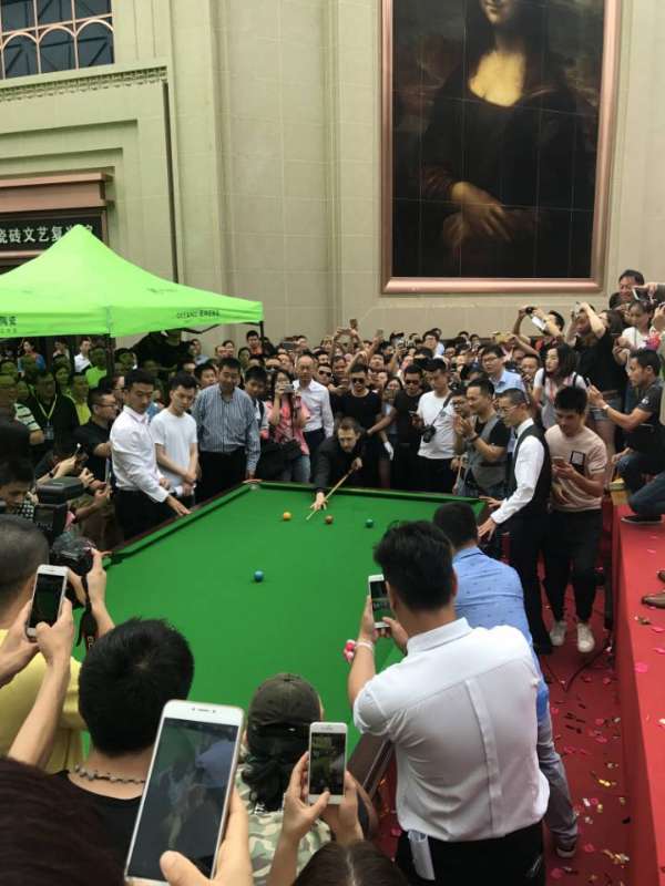 ▲世界斯諾克冠軍“賈德·特魯姆普”與羅馬利奧業(yè)主親切互動(dòng)。