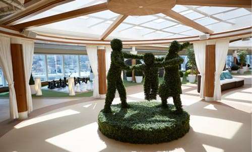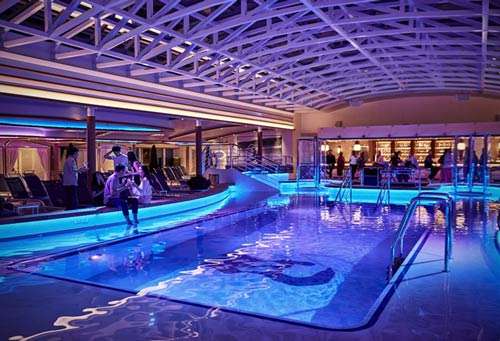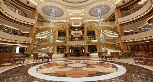 盛世公主號上的中庭廣場是整個船隊中規(guī)模最大的。在這里隨處可以看到歐式大理石、馬賽克瓷磚地板、波西米亞風(fēng)情的華麗吊燈、拋光木制品,以及以花卉圖案為主體的中國風(fēng)的裝修元素。