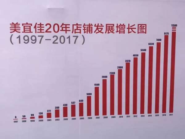 從1997年―2017年,美宜佳這20年店鋪發(fā)展呈現(xiàn)飛速增長趨勢。截止目前,美宜佳門店分布于全國5個省份,其中廣東最多,達到9534家,此外福建326家、湖南108家、江西20家、湖北12家。