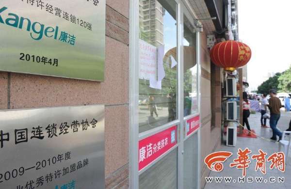 加盟了兩家康潔洗衣店的王先生表示,康潔公司在西安共有一百多家連鎖店,主要分為直營店、加盟店和合資店。最早關(guān)門停業(yè)的都是直營店和合資店,有些拿著儲(chǔ)值卡的客戶在直營店無法消費(fèi),就慢慢轉(zhuǎn)向加盟店,由于西安康潔公司無法再給加盟付費(fèi),很多加盟商為了避免損失也只好關(guān)門。