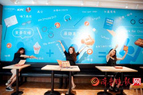 在肯德基小藍單車主題店里,記者看到巨大的墻貼上出現了“《5年高考3年模擬》”、筆記本、數學公式、高考口號、懷念青春的歌詞等諸多高考元素,讓人耳目一新,高考元素的融入重現了高中學習場景,增添了主題店的青春氣息。