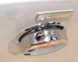 本款浴缸在側面設有排水旋鈕,轉動旋鈕,底部出水口會向上彈起,實現(xiàn)排水。從圖中我們可以看到,出水口上有一副金屬支架,其作用是攔截洗浴中掉落的毛發(fā),防止堵塞排水管道。