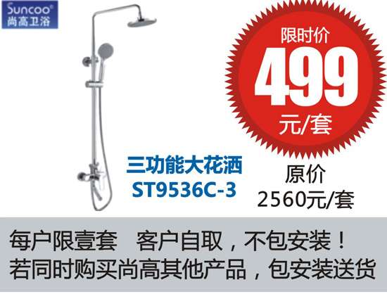 3.7房超網(wǎng)第四屆家裝狂歡節(jié) 尚高衛(wèi)浴三出水花灑499元/套