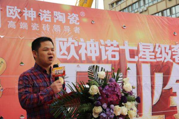\u00A0 \u00A0 佛山歐神諾陶瓷股份有限公司北方大區(qū)銷售總監(jiān)黃浪平先生以慷慨激昂的致辭,拉開(kāi)了開(kāi)業(yè)慶典的帷幕,向佳木斯政府機(jī)關(guān)、業(yè)界精英介紹了歐神諾的雄圖偉業(yè),并代表廠家表達(dá)了對(duì)佳木斯歐神諾的期待和認(rèn)可。