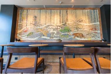 此外,作為哈爾濱首家星巴克臻選門店,匯麗廣場(chǎng)店也通過設(shè)計(jì)傳遞著對(duì)本地風(fēng)土人情的敬意。有著凹凸質(zhì)感的土坯墻,靈感取自東北農(nóng)家建筑的質(zhì)樸;豎向排列的原木制咖啡吧臺(tái),仿佛東北原始森林的縮影;寬大的長條聚會(huì)桌采用樹脂材質(zhì)制作而成,嘗試還原哈爾濱冰雕的藝術(shù)視效;星巴克雙尾美人魚在壁畫上流連于哈爾濱大劇院和索菲亞大教堂……