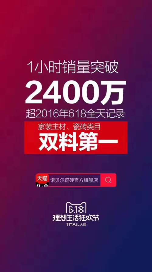 ??正是這一系列的線上、線下的聯(lián)動宣傳,天貓618理想生活家狂歡盛宴剛開始1分鐘,諾貝爾瓷磚天貓官方旗艦店交易額已破百萬;