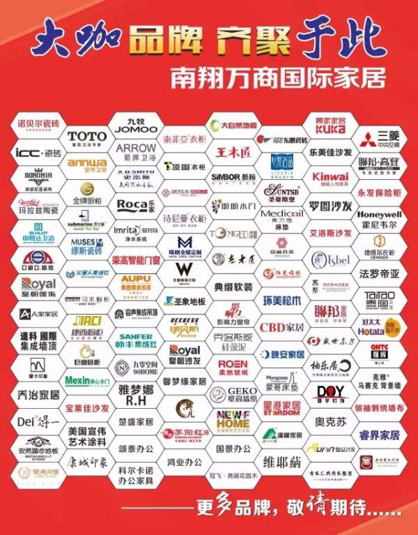 南翔萬商國際家居博覽中心位于岳陽大道東與武廣高鐵交匯處。一至五層聚集國際、國內(nèi)頂尖家居品牌,是各大品牌廠家的直銷中心,顧客一站式家居選購體驗中心。