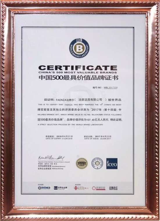 6月22日,由世界品牌實(shí)驗(yàn)室主辦的第十四屆“世界品牌大會(huì)”在北京舉行,會(huì)上發(fā)布了2017年《中國(guó)500最具價(jià)值品牌》分析報(bào)告。在這份基于財(cái)務(wù)數(shù)據(jù)、品牌強(qiáng)度和消費(fèi)者行為分析的年度報(bào)告中,法恩莎以107.45億元的品牌價(jià)值榮登本年度中國(guó)品牌500強(qiáng),法恩莎瓷磚品牌價(jià)值再創(chuàng)新高!