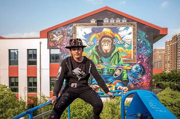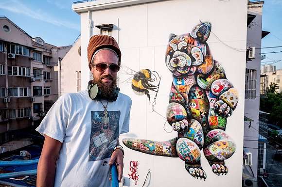 美籍日裔DAAS在川沙民宿的作品叫做《我們是守護(hù)者》,“我的畫作中有很多中國的元素。”他說,“小女孩穿的是中國傳統(tǒng)的旗袍,紅綠金三個顏色作為裝飾元素;她手中握著的地球,立足點就在于中國。”他已經(jīng)在全球不同地方,以動物為主題進(jìn)行了相似的創(chuàng)作,而上海“為愛上色”則是他作品風(fēng)格的延續(xù)。