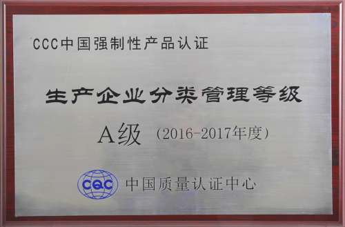??2017年5月10日,中國質(zhì)量認(rèn)證中心(以下簡稱CQC)南京分中心主任徐軍、主任助理儲建平等領(lǐng)導(dǎo),至西蒙電氣海安工廠,授予西蒙電氣(中國)有限公司“CCC中國強(qiáng)制性產(chǎn)品認(rèn)證生產(chǎn)企業(yè)分類管理等級A級”榮譽(yù)稱號。