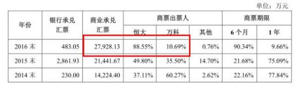 在招股說明書中,蒙娜麗莎集團對此解釋為,主要原因是其第一大客戶廣州恒大材料設備有限公司(下稱:恒大材料)進行了商業(yè)承兌匯票的年限變更。
