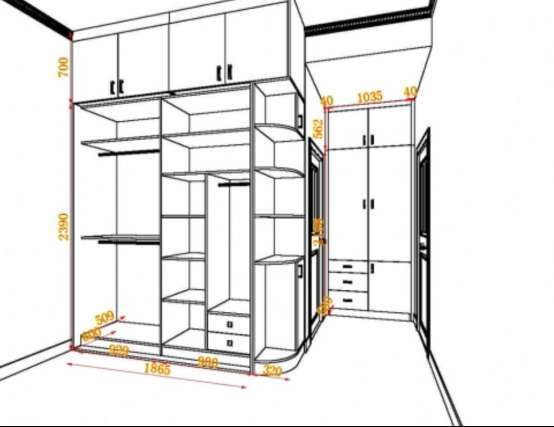 如果是一對(duì)小夫妻居住的,其二人的衣物肯定是多樣化的,需求同存異。在同時(shí)滿足兩人的共同需求外,還可分出個(gè)人的衣物存放區(qū)域,一般將左右兩邊分別設(shè)置成男女方各自的儲(chǔ)衣空間。