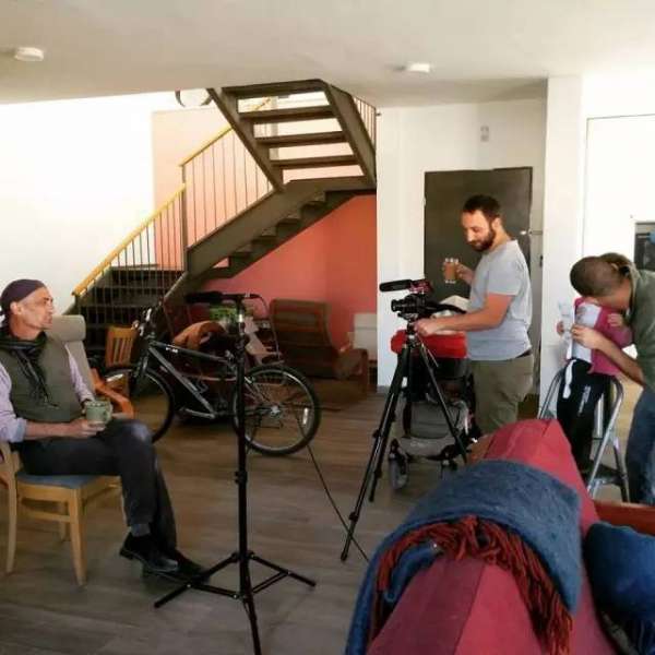 接受電視節目的采訪,