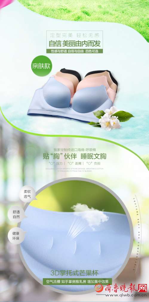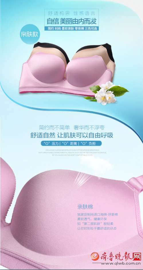 親膚款的主要材料是親膚棉,0甲醛的西班牙進(jìn)口材質(zhì),面料和手感都是目前市場上罕有的,按人體360度精準(zhǔn)設(shè)計,結(jié)合優(yōu)質(zhì)超細(xì)面料,經(jīng)高溫高壓幾次成型。真正實現(xiàn)了罩杯與胸部的完美貼合,無痕杯“O”壓力、“O”距離、“O”負(fù)擔(dān),舒適自然,讓肌膚可以自由呼吸,成為最健康的二十四小時的貼“胸”伙伴,堪稱“睡眠文胸”行業(yè)的一次跨時代革命,開創(chuàng)無鋼圈之最。