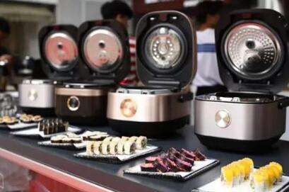 ??重慶、溫州巡展現場五彩繽紛的壽司料理,吸引了眾人目光。壽司上面的刺身考驗的是刀工和肉質,那么下面的飯團又是如何做的這么好吃呢?沒錯!這些壽司均由美的“大廚”真空變壓IH電飯煲制作!