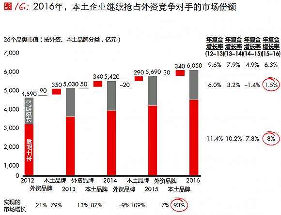 凱度消費者指數、貝恩公司:中國本土快消品牌正在蠶食外資品牌份額