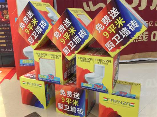 宣傳力度史無(wú)前例,商場(chǎng)內(nèi)外已被開(kāi)業(yè)廣告淹沒(méi),拱形彩橋一座座的矗立在商場(chǎng)門前,吸睛力十足,千米紅毯環(huán)繞商場(chǎng)內(nèi)一周,無(wú)論從哪個(gè)角落總能輕易找到法恩莎瓷磚旗艦店;大門口、手扶梯、電梯口、地面、墻上,法恩莎瓷磚“無(wú)處不在”!