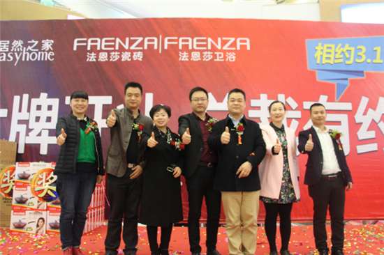3.19日開(kāi)業(yè)盛典當(dāng)天,法恩莎總部領(lǐng)導(dǎo)紛紛到場(chǎng)助陣,法恩莎瓷磚事業(yè)部總經(jīng)理鄧平峰先生親臨簽售,法恩莎衛(wèi)浴營(yíng)銷總監(jiān)葉維廣先生、居然之家負(fù)責(zé)人張波先生共同揭幕剪彩!