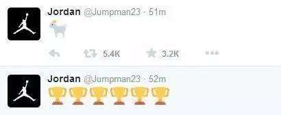 最后連喬丹也來湊熱鬧!他連發(fā)兩條,分別是6個總冠軍和一只山羊GOAT,代表著“Greatest Of All Time”,史上最強!