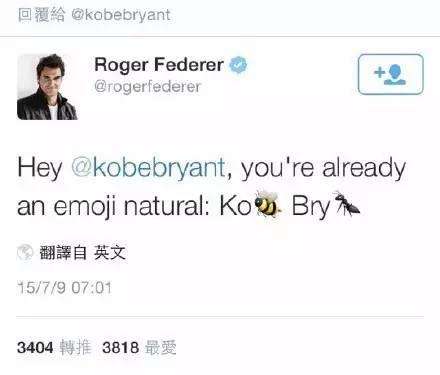 然后網(wǎng)球王費德勒轉(zhuǎn)發(fā)了科比的推特,用蜜蜂和螞蟻分別拼寫了科比的名字!
