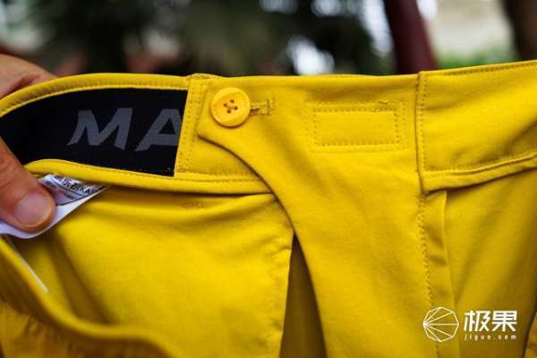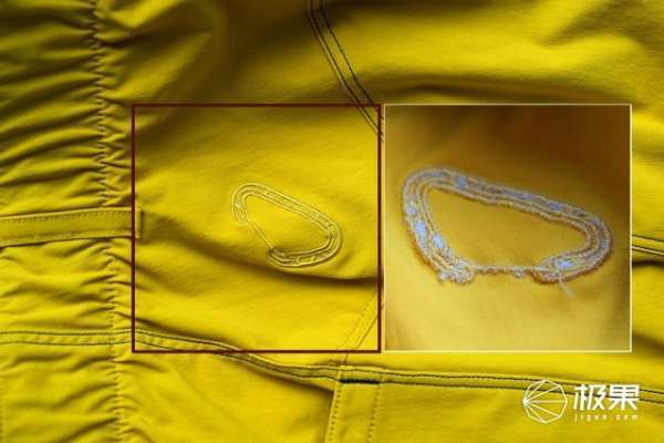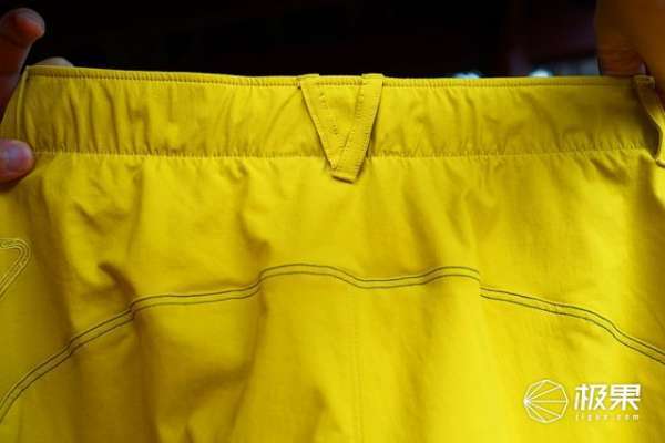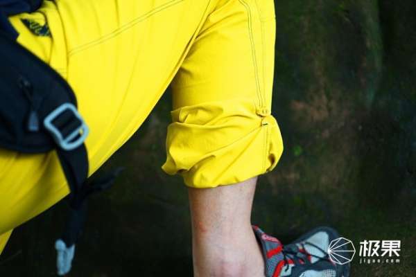 和很多戶外服飾一樣,凱樂(lè)石9A攀巖多功能褲的小腿位置上設(shè)有固定褲腳的孔位,需要把褲腿挽起時(shí)可以起到固定的作用。