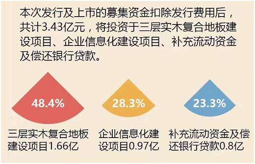 就菲林格爾而言,本次募集資金共計3.43億元,募集資金將用于“三層實(shí)木復(fù)合地板建設(shè)項(xiàng)目”、“企業(yè)信息化建設(shè)項(xiàng)目”、“補(bǔ)充流動資金及償還銀行貸款”,其中三層實(shí)木復(fù)合地板為公司未來重點(diǎn)拓展的新產(chǎn)品之一。其中,三層實(shí)木復(fù)合地板項(xiàng)目投資1.66億,這對于行業(yè)的影響十分明顯。