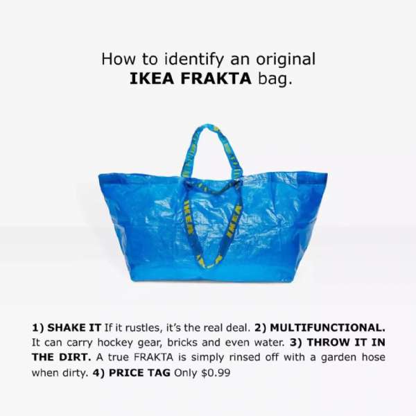 當巴黎世家等品牌把宜家普通的購物袋都快要玩壞的時候,宜家并沒有自視甚高的維權,他們只是低調而又幽默的做了一則廣告,告訴消費者怎么識別宜家購物袋的真假。誰說這不是為宜家做了一次零投入,穩賺不賠的廣告宣傳,別的不說,宜家的購物袋肯定掀起了購物熱潮。