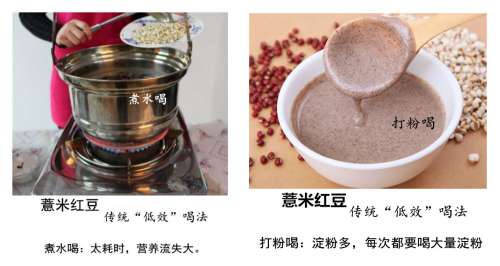 打粉喝:打成粉,淀粉全部溶出,每次喝都要攝入大量淀粉。