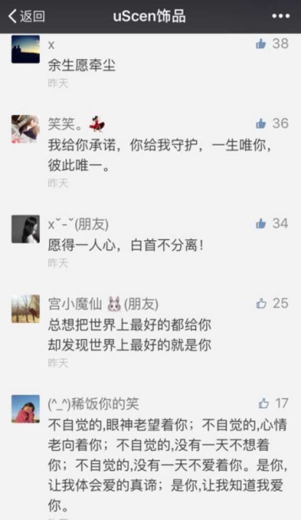 不得不說(shuō),一直被譽(yù)為“全球最懂女人的時(shí)尚飾品”的U.SCEN,其實(shí)也很懂男人!活動(dòng)一出,各路英雄才思泉涌,有人吟詩(shī)作對(duì),有人感動(dòng)煽情,也有人逗比搞笑。但無(wú)論哪種風(fēng)格,每段留言背后,似乎都能讀出一段感人的愛(ài)情故事。