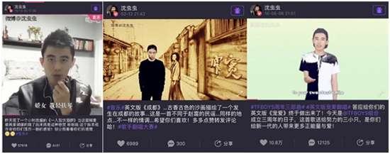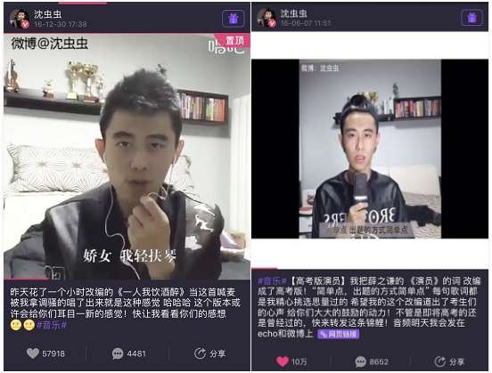 作為資深美拍達人,沈蟲蟲熱衷于將自己的最新音樂作品,與美拍用戶分享。