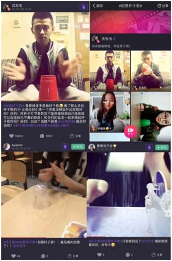 作為一名優(yōu)質(zhì)的美拍音樂達人,沈蟲蟲不僅自己玩音樂,更帶領(lǐng)網(wǎng)友一起發(fā)現(xiàn)生活中的音樂。在其發(fā)起的美拍話題#創(chuàng)意杯子歌#中,沈蟲蟲的教程視頻播放量超192萬,開創(chuàng)的音樂新玩法,吸引了眾多粉絲一同參與。
