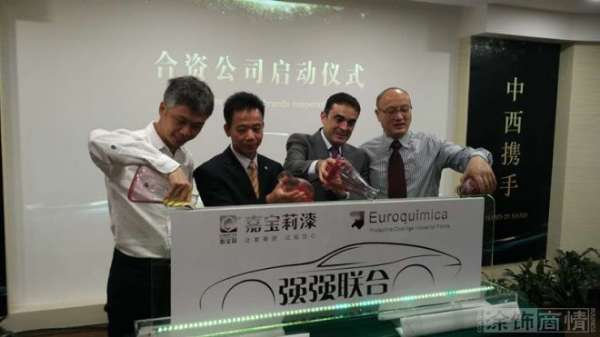 嘉寶莉團隊花費近2年的時間深入調(diào)研西班牙一家涂料公司,即西班牙歐洲化學涂料有限公司。歐洲化學涂料有限公司已有55年的歷史,在法國和墨西哥等都有設立子公司。主營業(yè)務以生產(chǎn)、銷售工業(yè)漆為主。歐洲化學有限公司通過了ISO9001質(zhì)量管理體系認證及ISO/TS16949 質(zhì)量管理體系認證,即“汽車行業(yè)生產(chǎn)件與相關服務件的組織實施ISO9001的特殊要求認證”。該公司在歐洲業(yè)績排名名列前49名,在涂料行業(yè)名聲較高。歐洲化學在工業(yè)漆生產(chǎn)、銷售和服務積累了豐富經(jīng)驗,目前已經(jīng)擁有包括奧運會場館在內(nèi)的一大批工程保護防腐案例,也成為大眾、豐田、雷諾等公司的汽車零部件油漆生產(chǎn)廠商。經(jīng)多次協(xié)議,雙方最終敲定合作方案,嘉寶莉成功入股歐洲化學涂料有限公司并共同合資成立廣東歐達亞公司。
