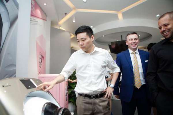 7月2日,“小天鵝”2017斯諾克世界杯代表隊(duì)的選手們組成男神天團(tuán),齊聚小天鵝產(chǎn)品展廳,為小天鵝比佛利等系列新品站臺(tái)。而在緊隨其后的7月3日開幕式上,小天鵝品牌管理經(jīng)理王萬里出席會(huì)場,與臺(tái)下的小天鵝觀眾方陣一起,為球員鼓勁加油。