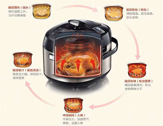 產品特性:立體烹飪技術;十項安全保護;五步加壓技術;高靈敏感溫探頭