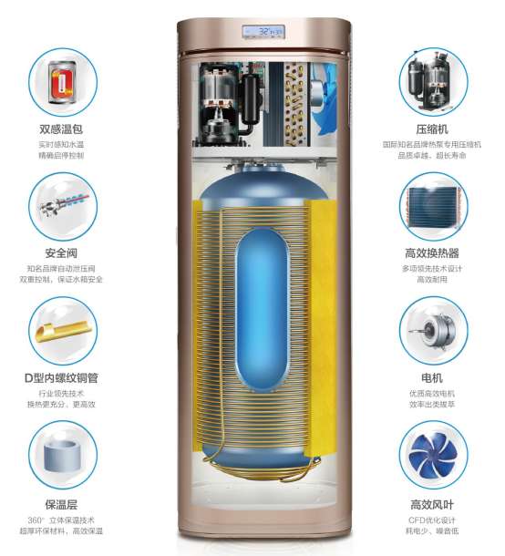 \u00A0\u00A0\u00A0所謂的空氣能熱水器就是以少量電能驅動壓縮機運轉,從空氣中吸收大量免費熱能,再釋放給冷水以制取生活熱水,使用時不受光照影響,無論陰天,晴天,都能產生熱水,隨用隨加熱。空氣能熱水器,相當于能量“搬運”裝置,將空氣中免費的熱能“搬運”到水中。