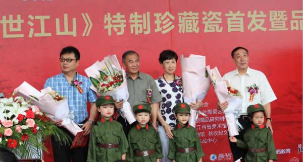 《盛世江山》特制珍藏瓷亮相現(xiàn)場(chǎng),江西省美術(shù)館、南昌八一起義紀(jì)念館、井岡山革命博物館、秋收起義銅鼓紀(jì)念館、延安革命紀(jì)念館負(fù)責(zé)人對(duì)作品藝術(shù)價(jià)值表示充分認(rèn)可,并在現(xiàn)場(chǎng)舉行了館藏交接儀式。